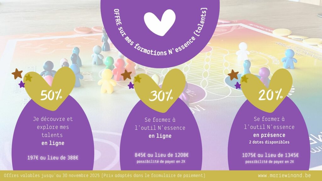 Tu te poses des questions, tu hésites à te former ou à entamer un travail sur toi avec le modèle N’essence ? Je t’invite chaleureusement à découvrir mon webinaire gratuit :